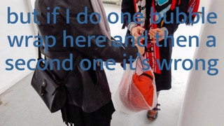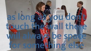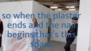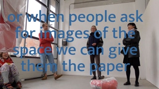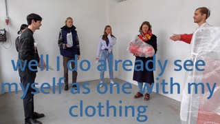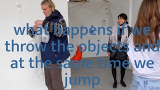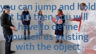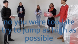 Soon the group came to the conclusion that for the model to be working correctly they must remove the objects from their fixed positions, so that they could be free in space. The group then collectively threw the pieces of the diagram into the air whilst jumping - in doing so allowing the theory to exist in the space for a split second.